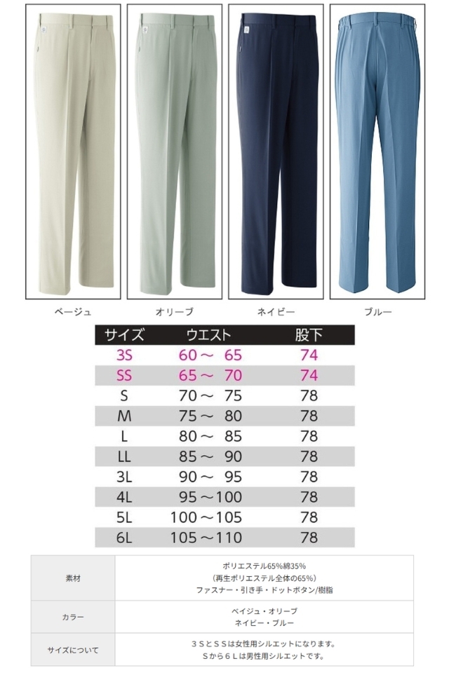 Sから6Lは男性用シルエットです。