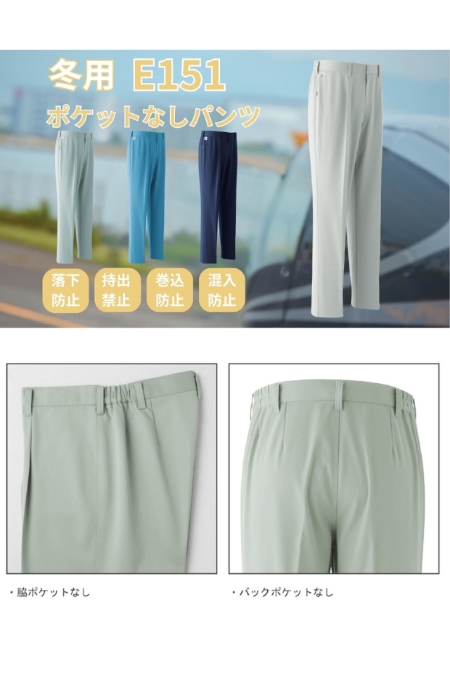 【秋冬】ポケットレスパンツE151【ポケットなし作業ズボン】