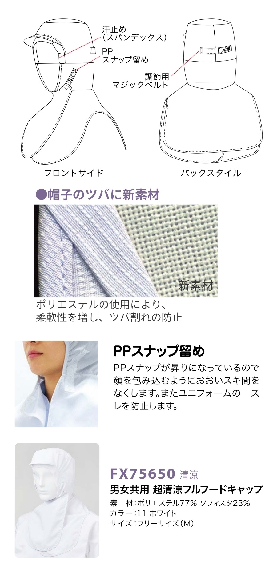 【食品衛生帽子】超清涼素材アイスフレッシュ低発塵異物混入防止フルフェイス帽子FX75650