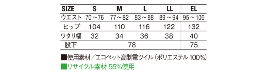 【BIGサイズ】【秋冬】IEC61340-1-5-1適合の高制電レディースパンツ80406