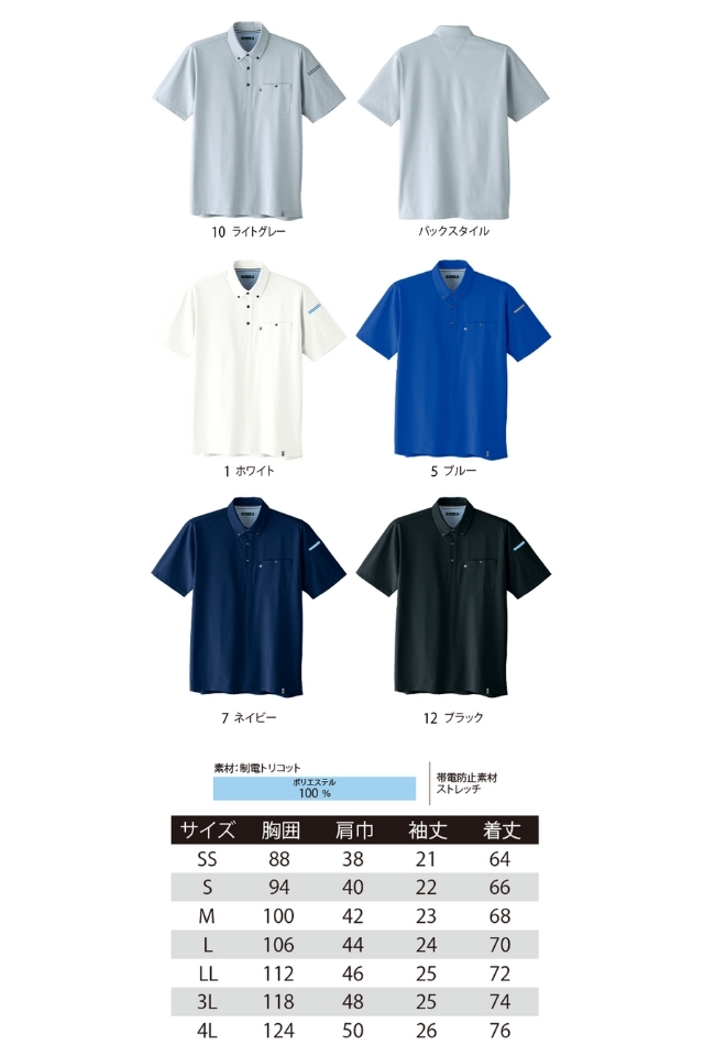 JIS規格適合制電ボタンダウン半袖ニットシャツ0023