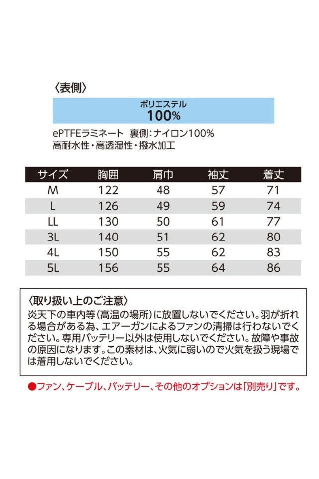 ゴアテックスを使用したレインウェア空調服ウェアのみの商品ページ