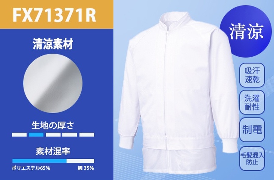 清涼素材で帯電帽子の吸汗速乾食品白衣男女共用ジャケットFX71371R