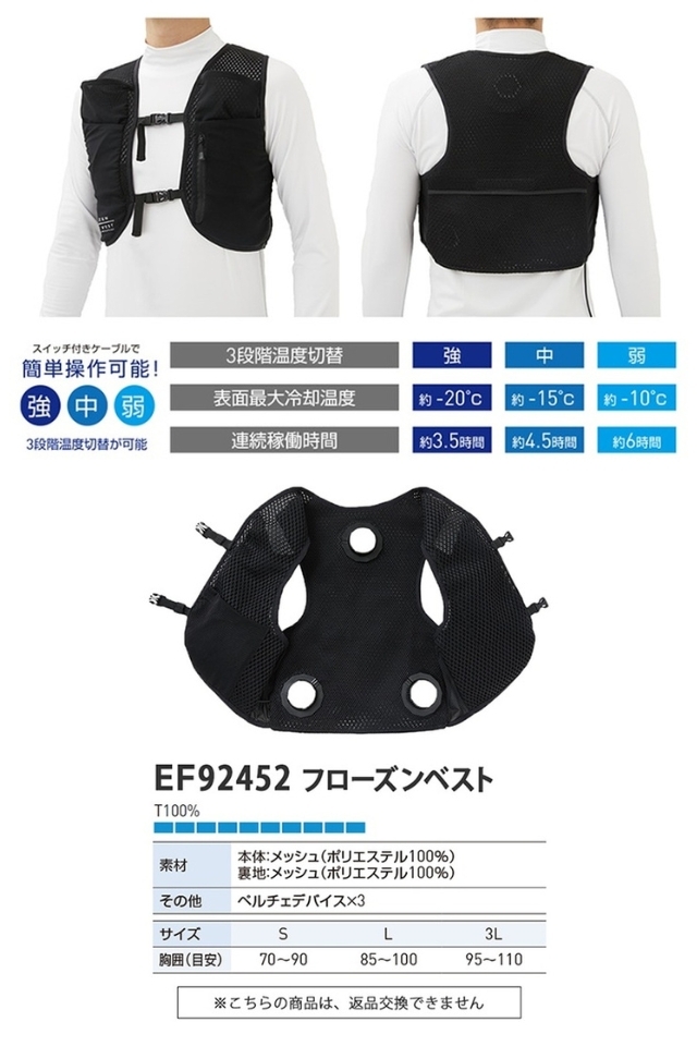 ペルチェ素子デバイス搭載の冷却フローズンベストEF92452モバイルバッテリーセット