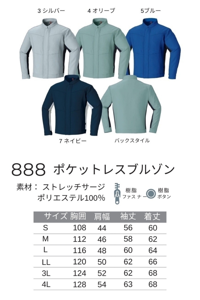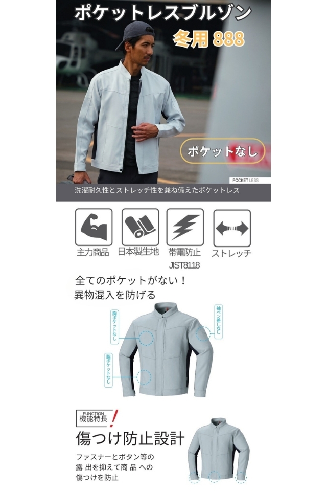 【秋冬】ポケットレス帯電防止JIST8118ブルゾン888