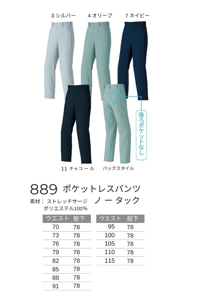【秋冬】ポケットレス帯電防止JIST8118パンツ889