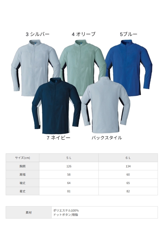 【BIGサイズ】【春夏】ポケットレス帯電防止JIST8118長袖シャツ8884