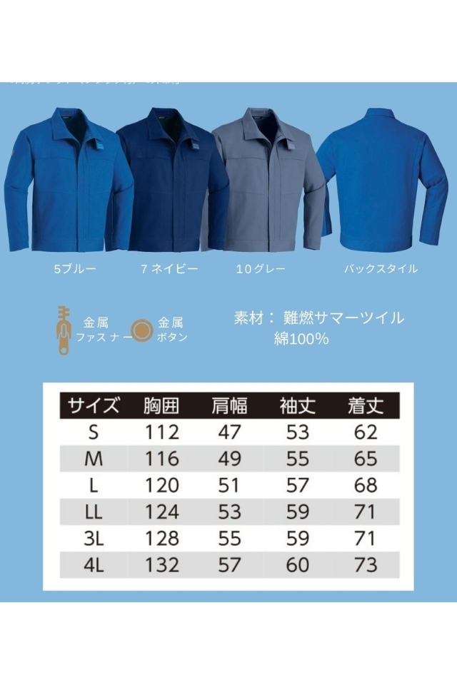 【BIGサイズ】【薄地】防炎作業服JIS規格適合の難燃防護長袖ブルゾン3512