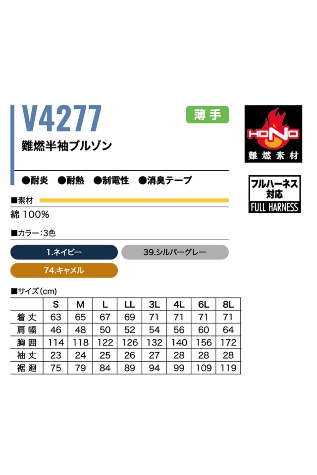 電動ファン付き快適ウェア防炎作業服HONO難燃半袖ブルゾンV4277セット