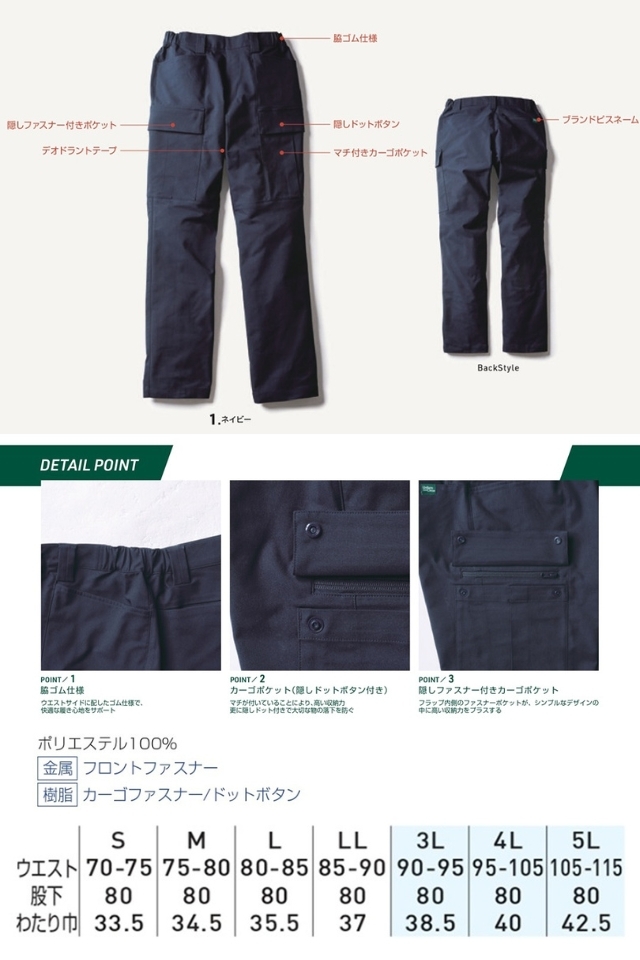 着る人を選ばず着用できる静電気帯電防止のオールシーズンカーゴパンツ。