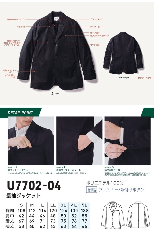 作業着としての用途を想定しデザイン性と機能性を兼ね備えた